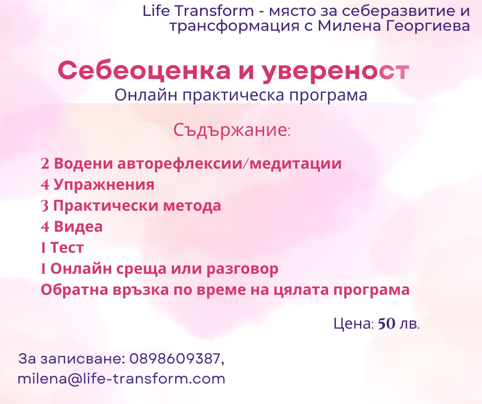 За формирането на самочувствието ни е важен не само житейския ни опит до сега, но и това как го интерпретираме и какви изводи правим. Ниската себеоценка се основава предимно на вярвания и на интерпретации, а не на факти, а тези вярвания и интерпретации могат да бъдат променяни и коригирани. Това е една от целите и резултатите на практическата онлайн програма за придобиване на адекватна себеоценка и увереност.