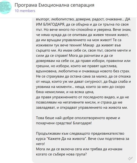 Запиши се за Онлайн програма „Емоционална сепарация“